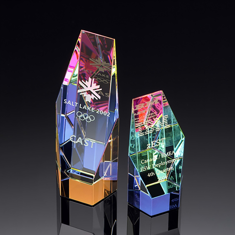 Nouveau trophée moderne pour cadeau d'affaires cristal personnalisation diamant coloré K9 verre cristal prix trophée Plaque